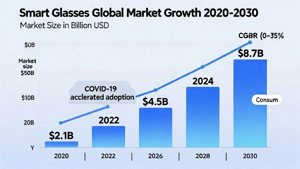 The market for smart glasses has evolved dramatically since Google Glass first captured public imagination in 2013. What began as an experimental product for early adopters has matured into a diverse ecosystem serving consumers, enterprises, and specialized professional fields. By 2025, the global smart glasses market is projected to reach $11.6 billion, with compound annual growth exceeding 25% (Grand View Research, Smart Glasses Market Analysis 2024). The enterprise segment accounts for 68% of total revenue, while consumer adoption is accelerating at 35% year-over-year (IDC Worldwide Wearables Forecast Q3 2024). By 2030, the market is expected to reach $28 billion, driven by miniaturization breakthroughs and 5G integration (MarketsandMarkets, AR/MR Market Report 2024).