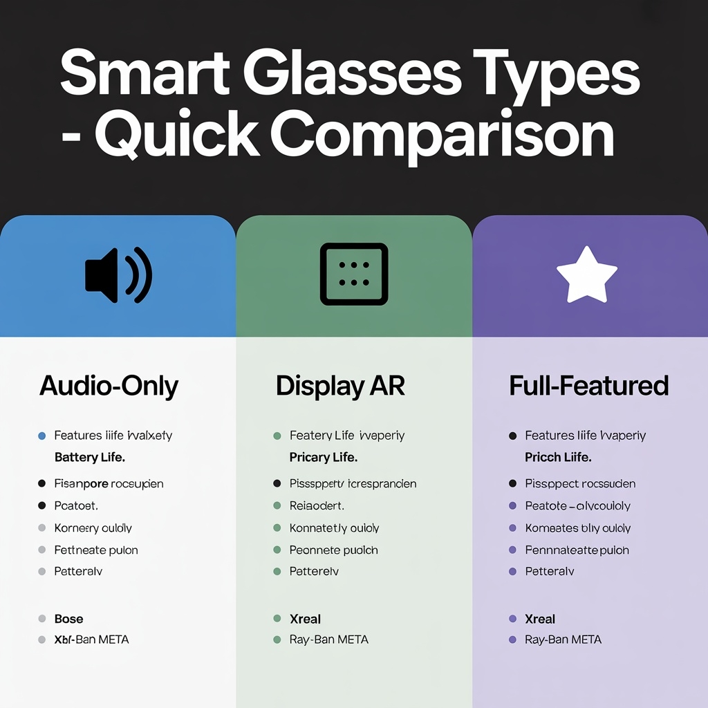 Smart glasses come in several distinct categories, each serving different needs and use cases: